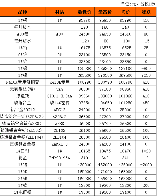 长江有色金属现货3月31日行情
