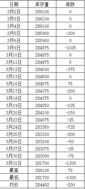 LME 2026年3月铅库存月度统计一览表