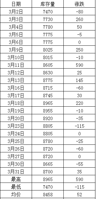 LME 2026年3月锡库存月度统计一览表
