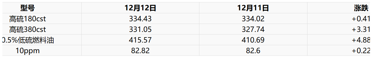 注:单位:美元/吨, 10ppm单位:美元/桶