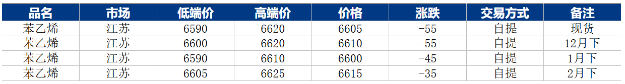 江苏苯乙烯早间市场,目前闻现货/准现货意向6590/6620;12月下6600/6620;1月下6590/6610;2月下6605/6625;单位:元/吨。原料端暂偏弱,苯乙烯自身暂博弈,期现货早间小幅低开整理。