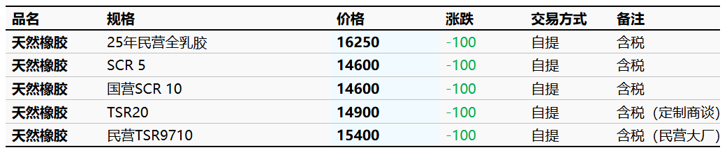 3月31日云南市场天然橡胶价格下跌