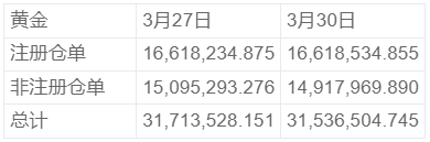 COMEX 3月30日黄金库存统计